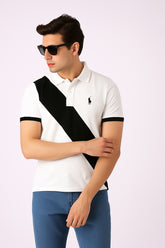 POLOO CROSS PANEL Men’s Branded Cotton PQ Shirt in White-Black
