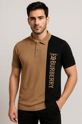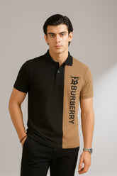 BURBARY PANEL Men’s Branded Cotton PQ Shirt in Skin-Black