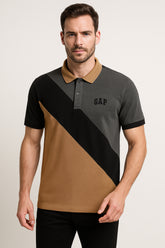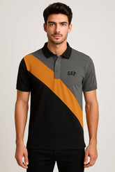 GEP PANEL Men’s Branded Cotton PQ Shirt in Black-C Grey