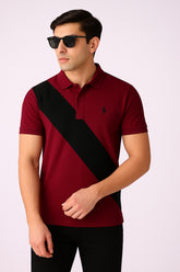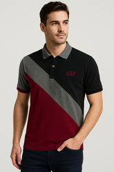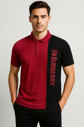 POLOO CROSS PANEL Men’s Branded Cotton PQ Shirt in Maroon-Black