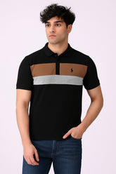 POLOO PANEL Men’s Branded Cotton PQ Shirt in Black