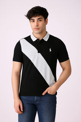 POLOO CROSS PANEL Men’s Branded Cotton PQ Shirt in Black-White