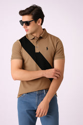 POLOO CROSS PANEL Men’s Branded Cotton PQ Shirt in Skin-Black