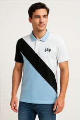 GEP PANEL Men’s Branded Cotton PQ Shirt in White-Sky Blue