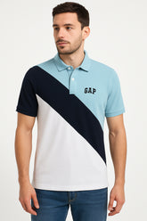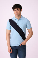 POLOO CROSS PANEL Men’s Branded Cotton PQ Shirt in Sky Blue-Navy Blue