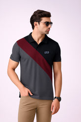 GEP Signature Polo – Modern Colorblock in Maroon-Grey