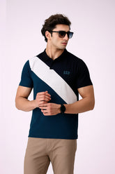 Make a bold statement with this GEP Men’s Colorblock Polo Shirt, featuring a sharp diagonal design in navy, black, teal, and white. Its clean, buttonless collar gives a sleek, modern edge, while the unique color paneling adds standout style. Made from premium Cotton PQ...- Rs.1,299.00