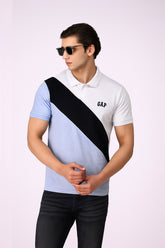 GEP Signature Polo – Modern Colorblock in Sky Blue-White