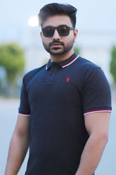 Branded Black Polo T-Shirt Pique Fabric