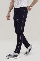 NK Embroidered Logo Navy Blue Cotton Jersey Trouser