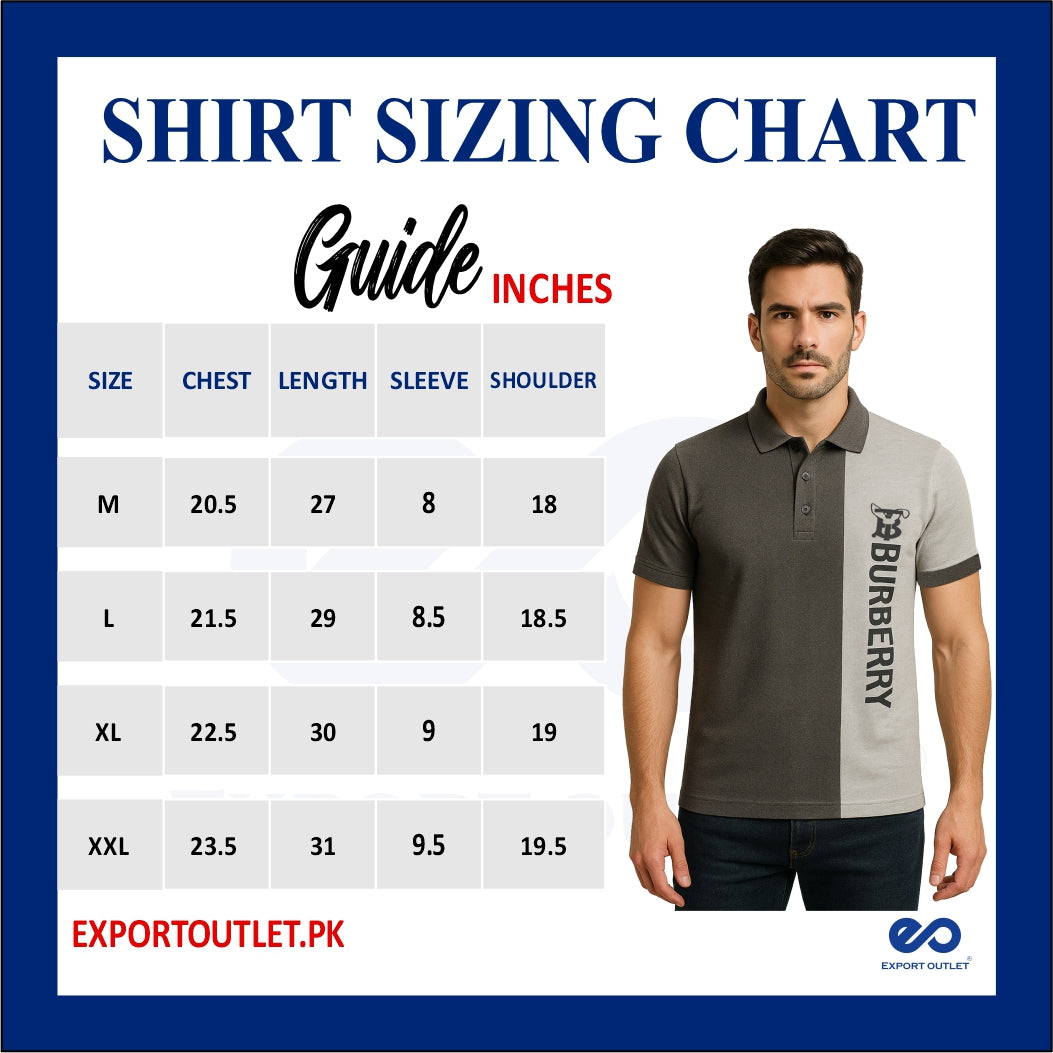 BURBARY PANEL Men’s Branded Cotton PQ Shirt in Charcoal-Grey